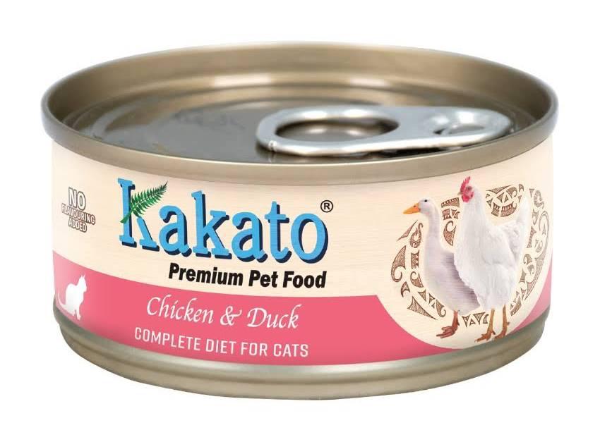 Kakato 雞肉鴨肉全貓糧罐頭是一款專為貓咪設計的優質寵物食品。從圖片中可見,這款貓糧罐頭以雞肉和鴨肉為主要成分,提供貓咪所需的完整營養。罐頭上標示「Premium Pet Food」,強調其優質的品質。此外,罐頭上還特別標註「NO FLAVOURING ADDED」,表示不含人工調味劑,讓貓咪吃得更健康。罐頭設計方便開啟,適合各種年齡段的貓咪食用。
